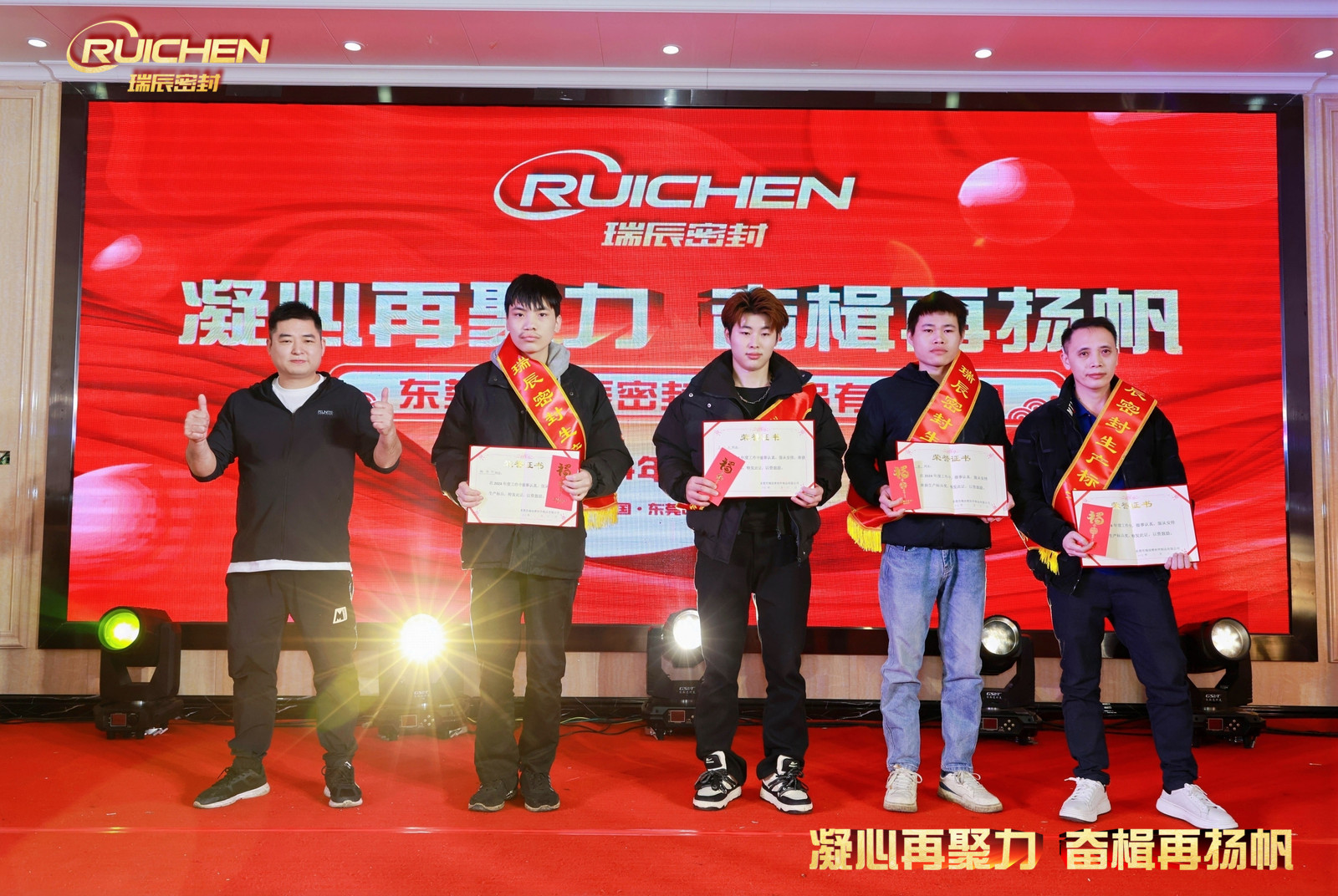 瑞辰密封技术总监衷兴国(右五)为东莞厂2024年度优秀员工颁奖